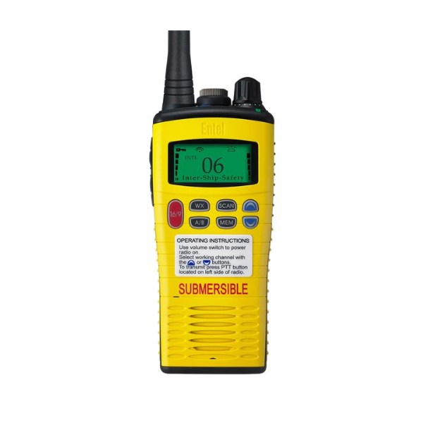 Entel HT HT 649 / P2 GMDSS provides all INT, USA & CAN Marine channels, 1W power and 56 channels. It also has the ability to program extra channels within the Marine band, a special type of waterproof connector for H / F use and is completely waterproof with IP68 endurance standards (5m depth for 1h) and MIL-STD 810 C / D / E / F.